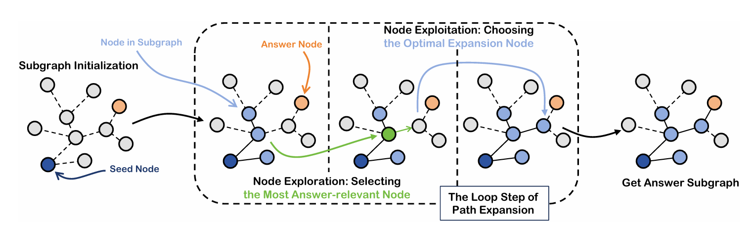 가장 먼저, 탐색을 시작할 Seed node를 선정해야 함. 주어진 쿼리와 임베딩 유사도가 가장 높은 Top-k 노드를 지식 그래프가 구축된 ChromaDB 에서 검색하여 얻어냄.