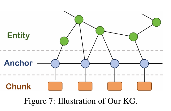 Anchor 노드는 각 chunk의 요약된 정보가 한 두 문장으로 담겨 있음. 이는 Chunk의 제목 역할을 하며, 노드 탐색 시 Chunk를 바로 찾는 것이 아니라 anchor 노드를 거쳐서 chunk를 찾게된다. 그래프 생성 순서는 아래와 같다.